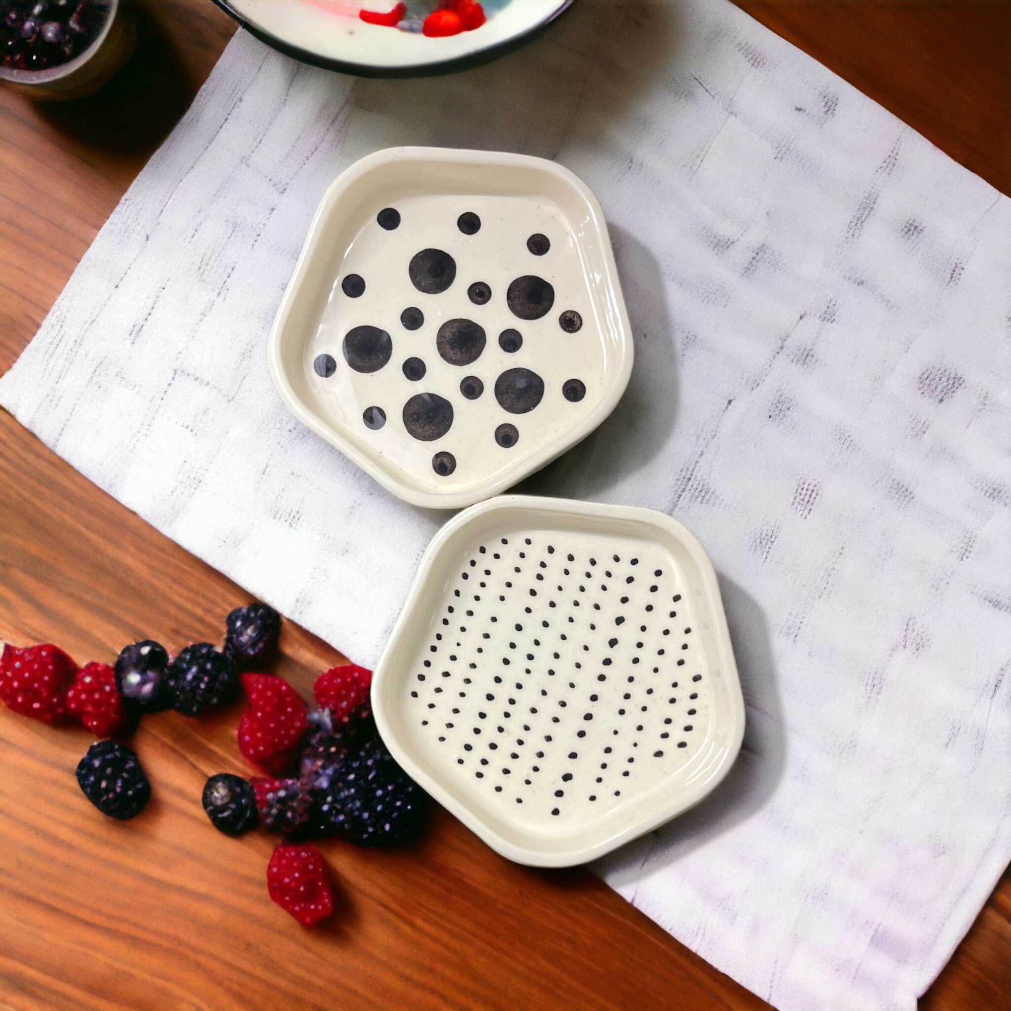 Discover our Black Polka Dots Snack/Dessert Plate Combo – the stylish way to present your favorite treats! These plates are trendy with classic black polka dots. They're just right for your snacks and desserts. Elevate your serving game with this combo and make your treats look even more delicious!