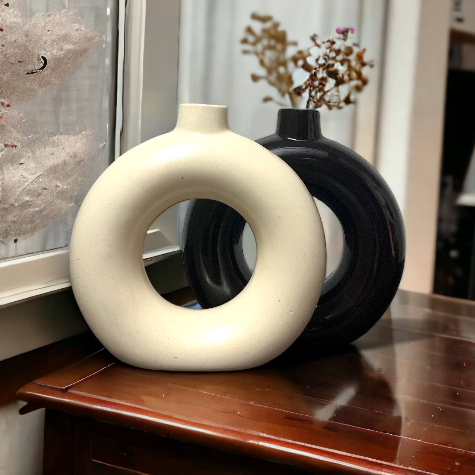 Meet our Black & White Donut Vase Combo – a playful pair for your home decor! These vases are shaped like delicious donuts and come in classic black and white. They're perfect for adding a touch of fun to your space. Get this combo and make your decor a little sweeter!