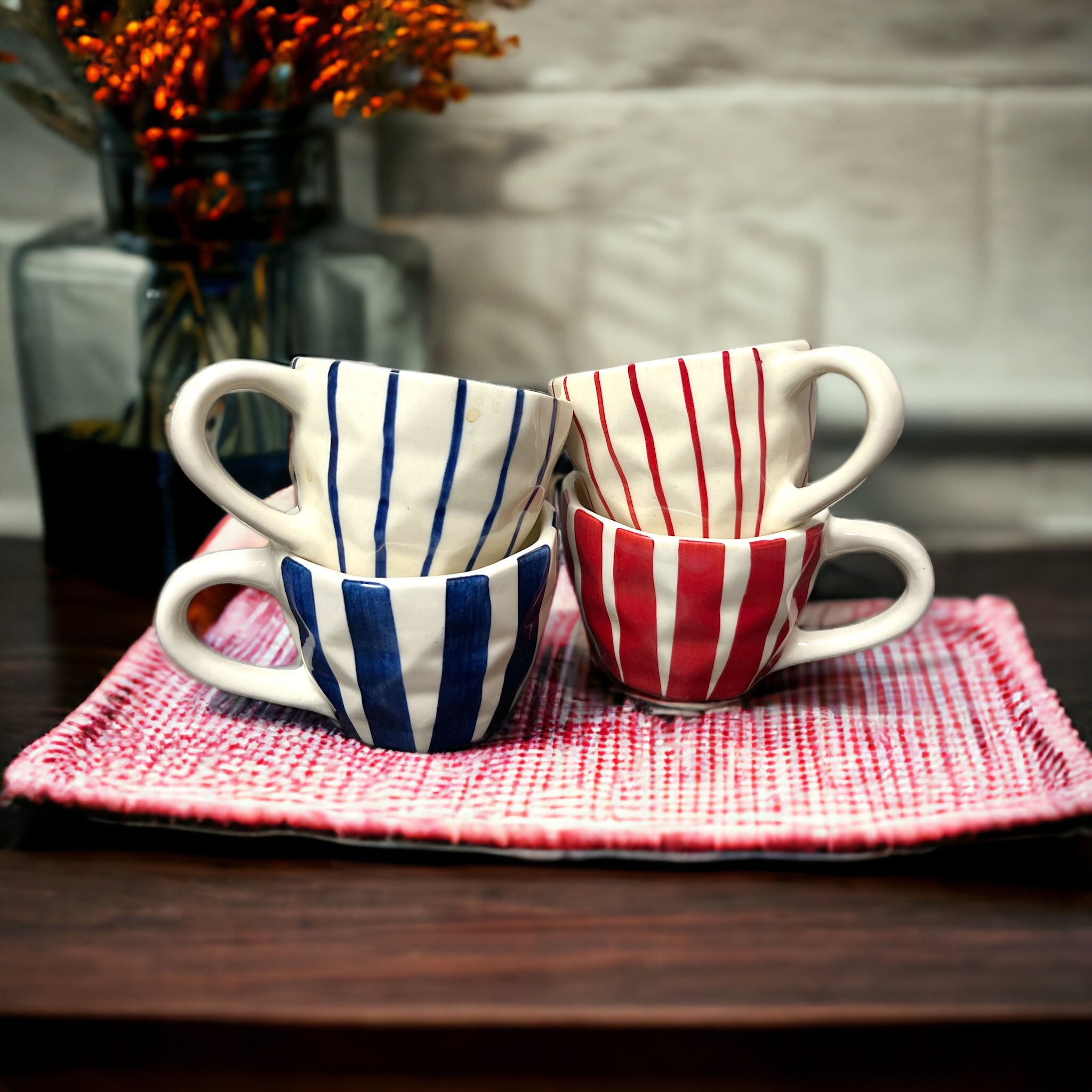 Meet our Blue and Red Lines Mugs Combo (Set of 4) – the perfect blend of style and variety for your drinks! These mugs feature sleek blue and red lines, adding a cool touch to your sips. Grab this combo and elevate your coffee or tea game!