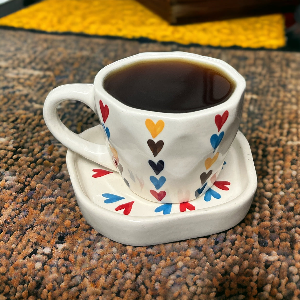 Introducing the Multi-Color Heart Breakfast Set, a delightful ensemble designed to make every morning meal a celebration of love and joy. This charming set includes a ceramic mug adorned with vibrant hearts, a matching plate for your favorite breakfast treats, and a bowl perfect for cereal or fruit, each piece featuring a cheerful array of colorful hearts against a crisp, white background. Ideal for adding a touch of whimsy to your morning routine or gifting to someone special, this breakfast set is not just functional; it's a daily reminder of love, perfect for anyone looking to start their day on a heartwarming note.