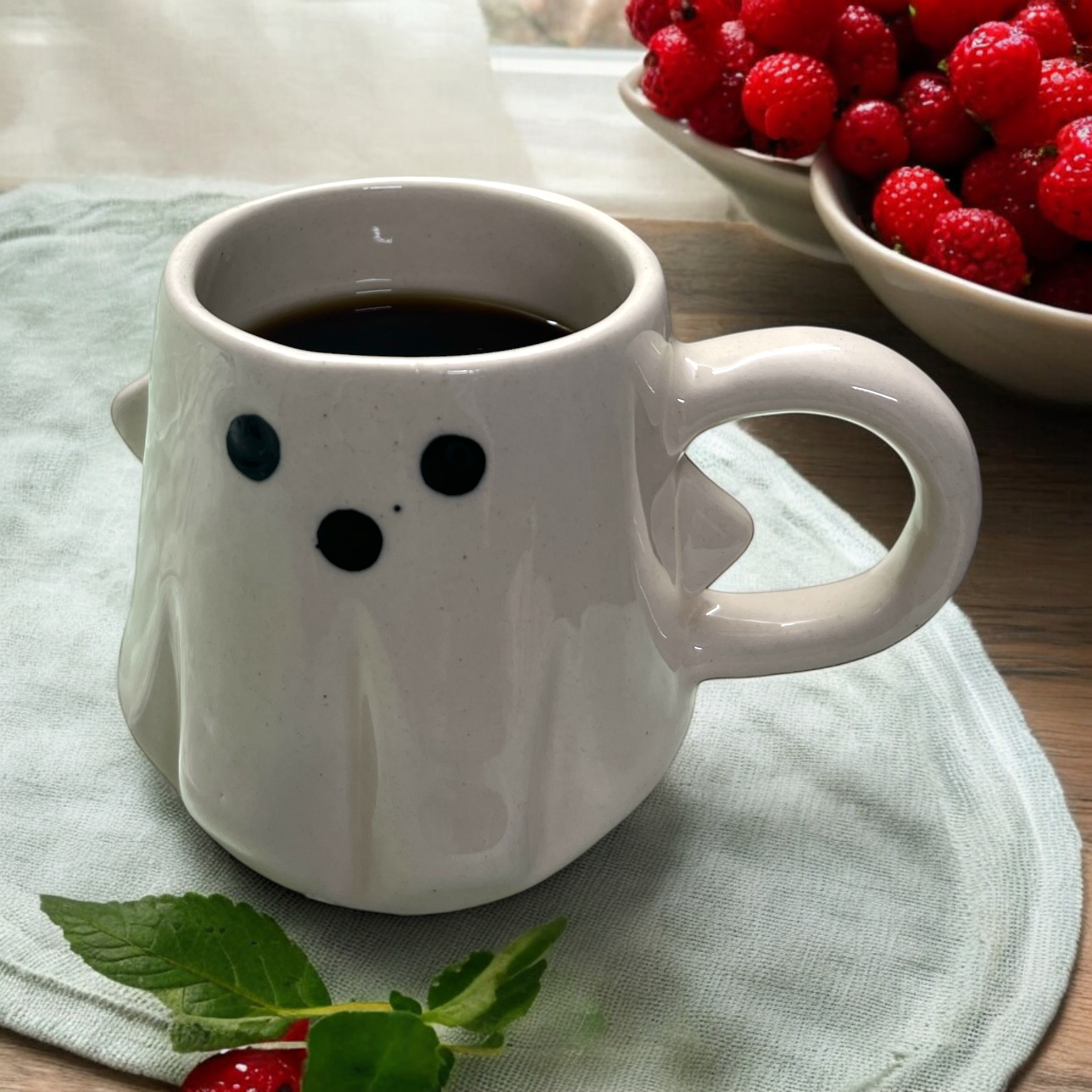 Embrace the playful spirit of our Ghostly Grin Mug. Crafted with care from high-quality ceramic, this charming cup adds a touch of fun to your morning routine. Sip your preferred warm drink from this unique mug that's sure to become a cherished part of your collection. A delightful accent for any kitchen or office.